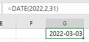 2022년 2월 31일은 없는 날짜이므로, 자동으로 다음달의 값에 해당하는 2022-03-03일이 계산되는 것을 알 수 있다.