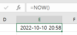 인자는 없으며, NOW()함수를 실행하면, 날짜와 시간이 합쳐진 정보가 셀에 저장된다.