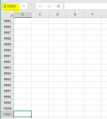 또한 만개의 난수 세트가 필요하므로 B10001 셀로 이동하여 아무 값이나 넣어둔다.