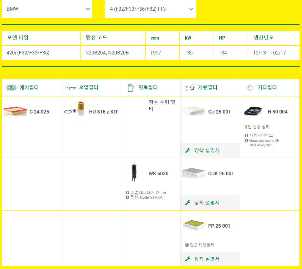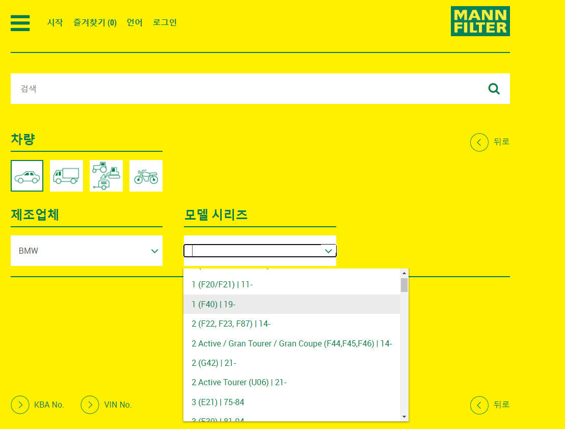 02. Mann 부품 검색 (Mann)무난하게 사용할 수 있는 부품 제조업체인 Mann에서 부품을 검색해보자. 그 전에 자신의 차가 무엇인지를 아는 것이 중요하다. 엔진의 종류를 아는 것이 제일 좋다.