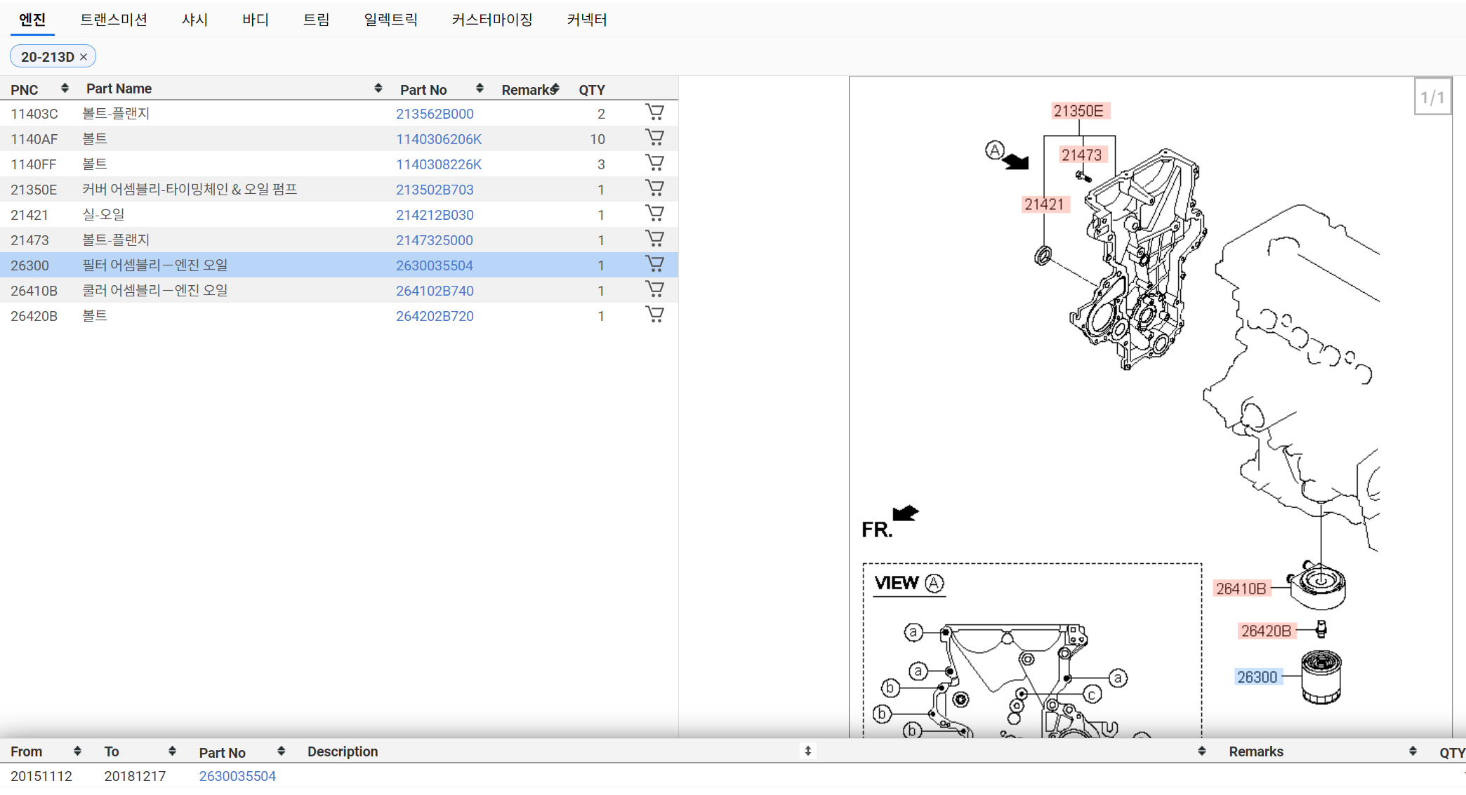 엔진 > 프론트 케이스 & 오일핕터 선택