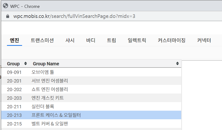 01. 현대 모비스 부품 상세 검색 이용현대모비스에서 제공하는 차량 부품상세 검색 서비스이다.