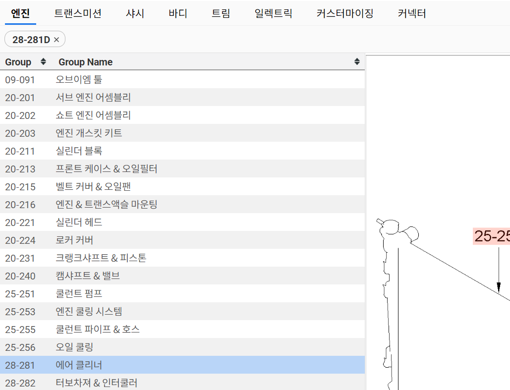 에어클리너 + 부품번호로 제품 검색 후 구매