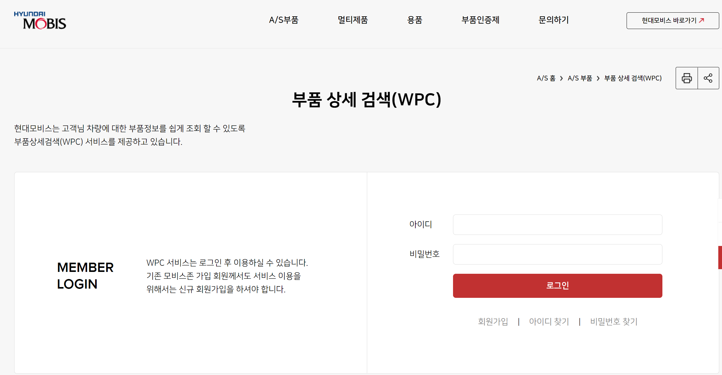01. 현대 모비스 부품 상세 검색 이용현대모비스에서 제공하는 차량 부품상세 검색 서비스이다.