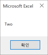 123456789101112131415161718192021222324252627Sub TestIf()Dim Number As IntegerDim Digits As IntegerDim MyString As StringNumber = 53If Number < 10 ThenDigits = 1ElseIf Numer < 100 ThenDigits = 2ElseDigits = 3End IfIf Digits = 1 ThenMyString = "One"ElseIf Digits = 2 ThenMyString = "Two"ElseMyString = "More than two"End IfMsgBox (MyString)End Subcs 53이 10보다 크고 100보다 작기 때문에 Digits 값이 2가 되고 Digits 값이 2가되면 MyString 값은 Two가 된다.