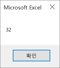 Sub 프로시저 TestSub1 은 endRow, endRowScope1, endRowPublic, endRowPrivate 라는 변수에 각각 32를 할당한 후, endRow의 값을 메시지 박스에 출력하며 종료된다.