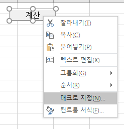 위의 그림처럼 버튼에서 매크로 지정을 통해 버튼을 누르면 동작할 서브 프로시저를 추가한다.