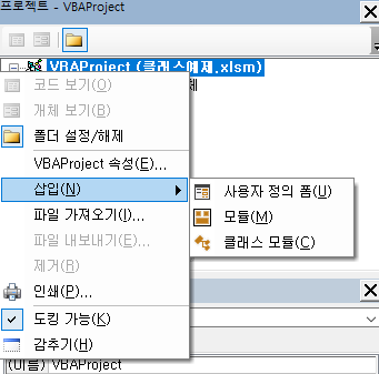 클래스 모듈을 추가하는 방법은 다음과 같다.