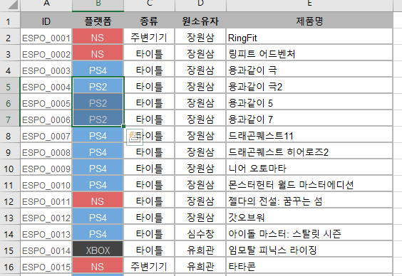 위의 그림처럼 B5:B7에 잘못된 데이터 PS2가 들어가 있다.