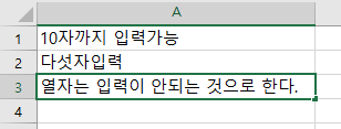 위와 같은 데이터가 있을 때, A열에 10글자까지의 텍스트만 입력 가능하게 만들어보자.