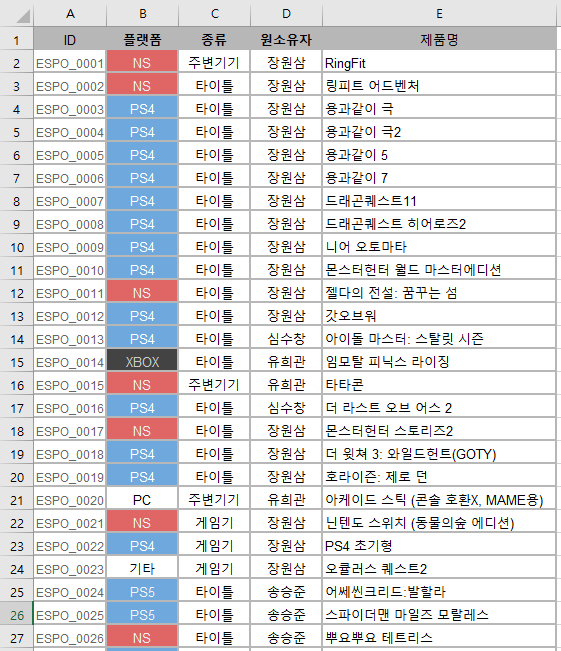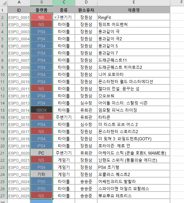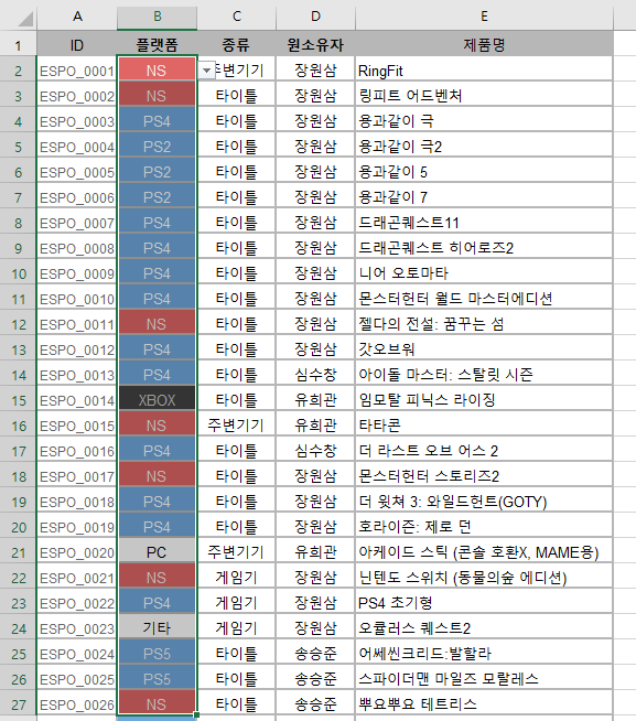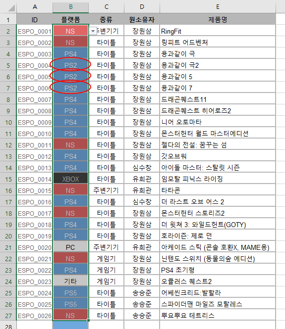 위의 그림처럼 B5:B7에 잘못된 데이터 PS2가 들어가 있다.