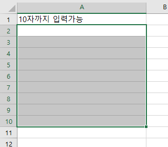 위와 같은 데이터가 있을 때, A열에 10글자까지의 텍스트만 입력 가능하게 만들어보자.