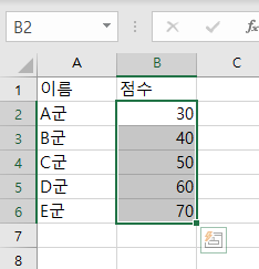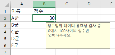 위와 같은 데이터가 있을 때, 점수 영역에 정수 범위의 유효성 검사를 추가하는 것이 가능하다. 여기서는 점수 영역에 0부터 100까지의 정수만 입력가능하게 만들어보자.