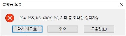 입력 시도 시에 다음과 같은 오류 메시지가 노출되는 것을 확인할 수 있다.