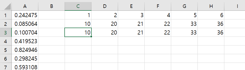 위의 난수를 선택하여 붙여넣기로 값만 복사한다.