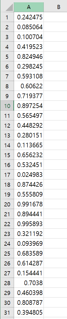 위의 난수를 선택하여 붙여넣기로 값만 복사한다.